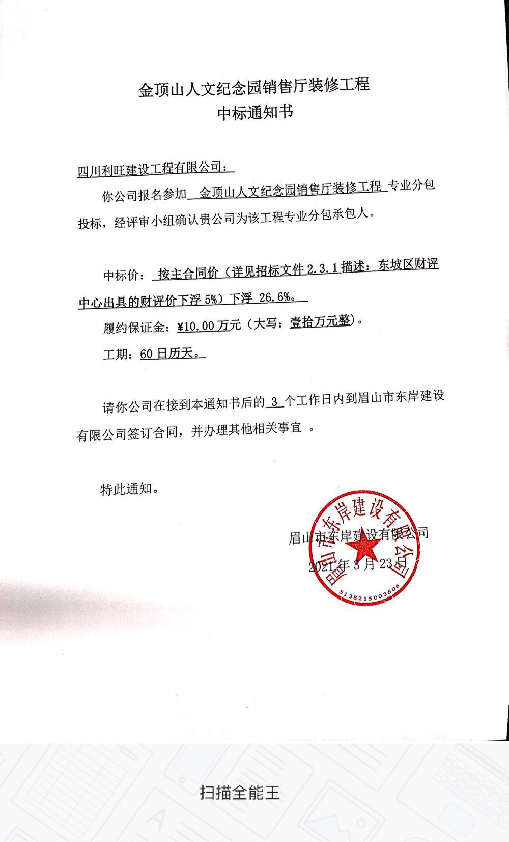 金頂山人文紀(jì)念園銷售廳裝修工程中標(biāo)公示