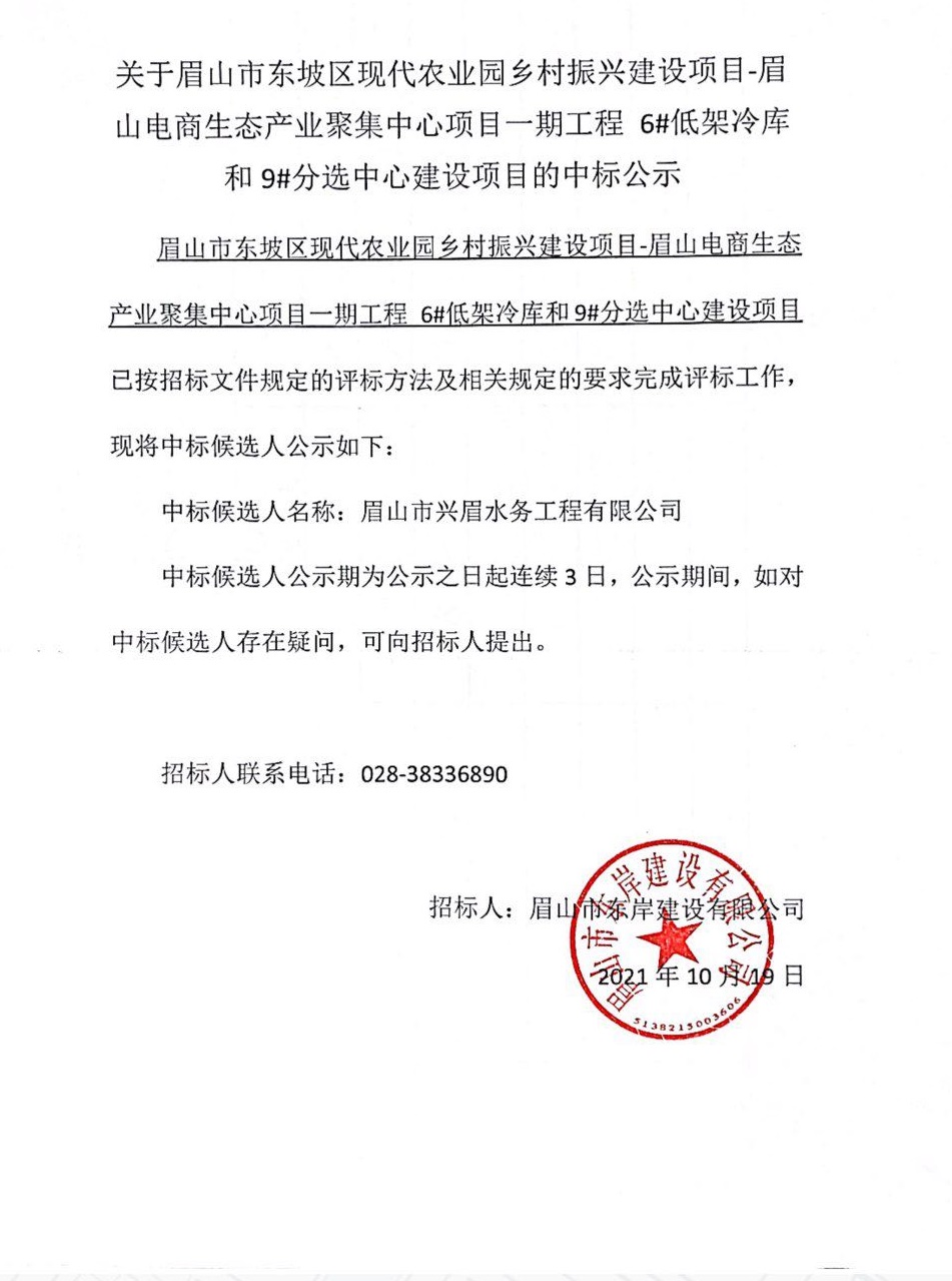 眉山市東坡區(qū)現代農業(yè)園鄉(xiāng)村振興建設項目-眉山電商生態(tài)產業(yè)聚集中心項目一期工程 6#低架冷庫和9#分選中心建設項目中標公示